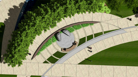 Human Nature collaborated with CMTA, Larson Engineering and artist John Isherwood for conceptual design and construction services for the Rock of Truth feature on the University of Cincinnati campus. The design creates a contemplative space to sit within the Sigma Sigma Commons on UCs main campus. A custom granite block seat with a wooden topper continues the form lines of the campus green and faces a large split and opened up boulder inscribed with a passage to inspire and provoke thought. A paving pattern uses granite pavers which radiate from the boulder and include inscriptions and sponsor signatures.
